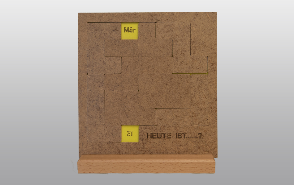 Grosser Puzzle-Kalender MDF roh mit Ständer